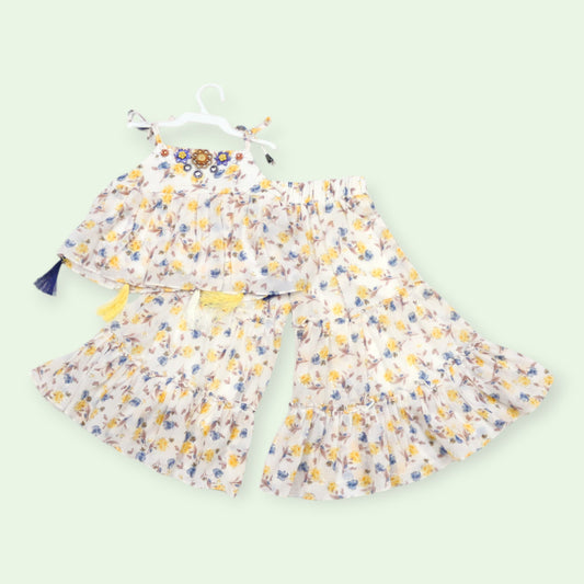 Floral Boho Top & Palazzo Set – Yellow and Blue Bloom