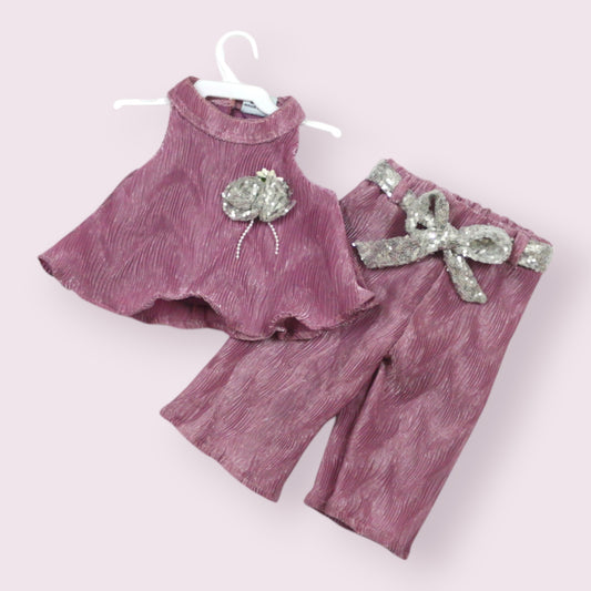 Elegant Purple Sleeveless Top & Pants Set – Shimmer Party Style
