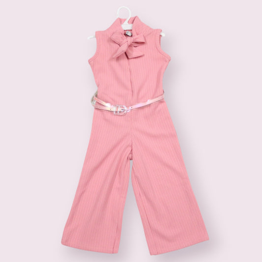 Stylish Pink Sleeveless Jumpsuit – Bow Tie Collar & Belted Design