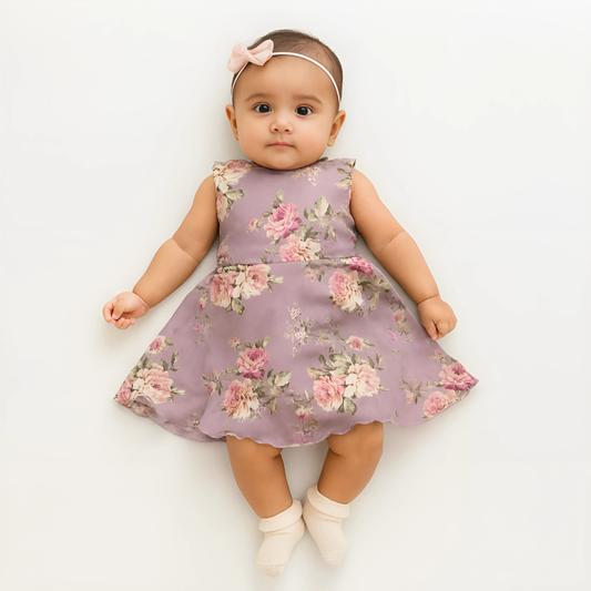 Lilac Floral Sleeveless Party Frock
